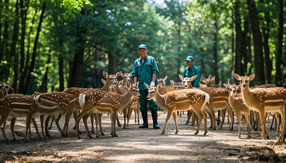 其中“京西鹿谷梅花鹿生態(tài)養(yǎng)殖繁育基地”,群山環(huán)繞、空氣清新、水源優(yōu)質(zhì)且充足,為梅花鹿的生長營造了良好的自然條件。基地內(nèi)植被豐富,有大量梅花鹿喜愛的嫩草和樹葉,充足的食物資源保障了梅花鹿飲食的多樣性。同時(shí)開闊的空間和適宜的氣候條件,為梅花鹿的生存提供的得天獨(dú)厚的優(yōu)勢,使其能夠自由地繁衍生息。
